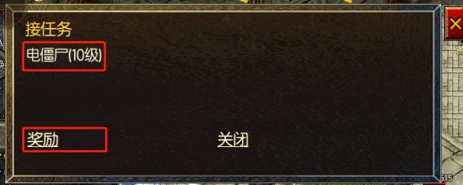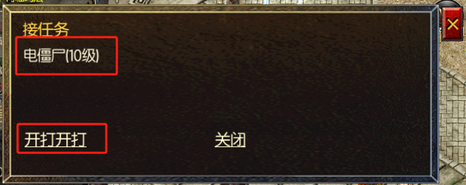 接取任务文字内容对应recv_dialogue,填写“对话内容&按钮内容”,比如“电僵尸(10级)&开打开打”对应游戏中显示如下: