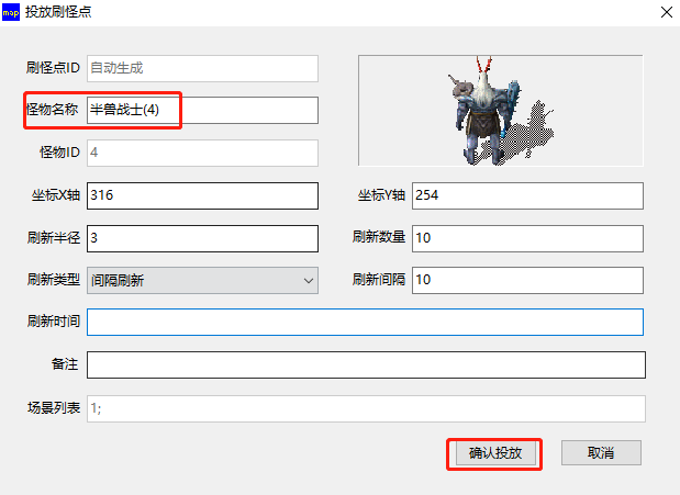 左键选中要编辑的格子,右键在弹出菜单中选择投放刷怪点;