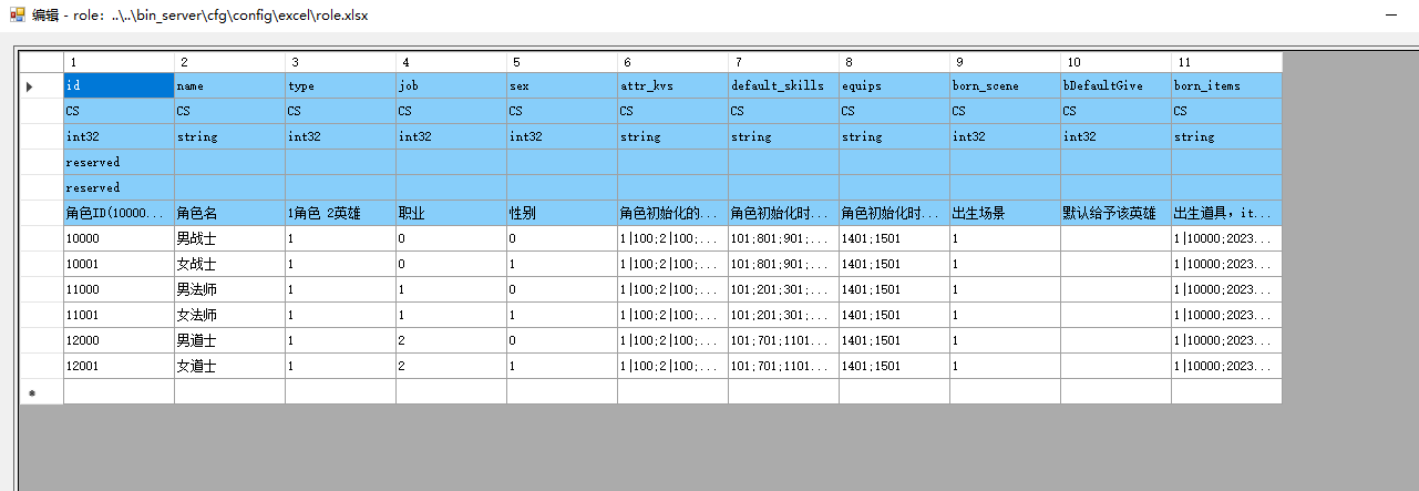 default_skills 角色初始化时已学会的技能。用分号;分隔多个技能