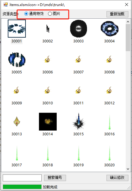 道具图标如果有特效需求,也可点击左上角切换至通用特效选择,,找到目标资源(通用特效中会有其他类型的资源,注意不要选错)。